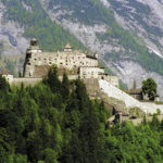 Von einem Felsvorsprung des Steinernen Meeres blickt die Burg auf das Saalfeldener Becken.